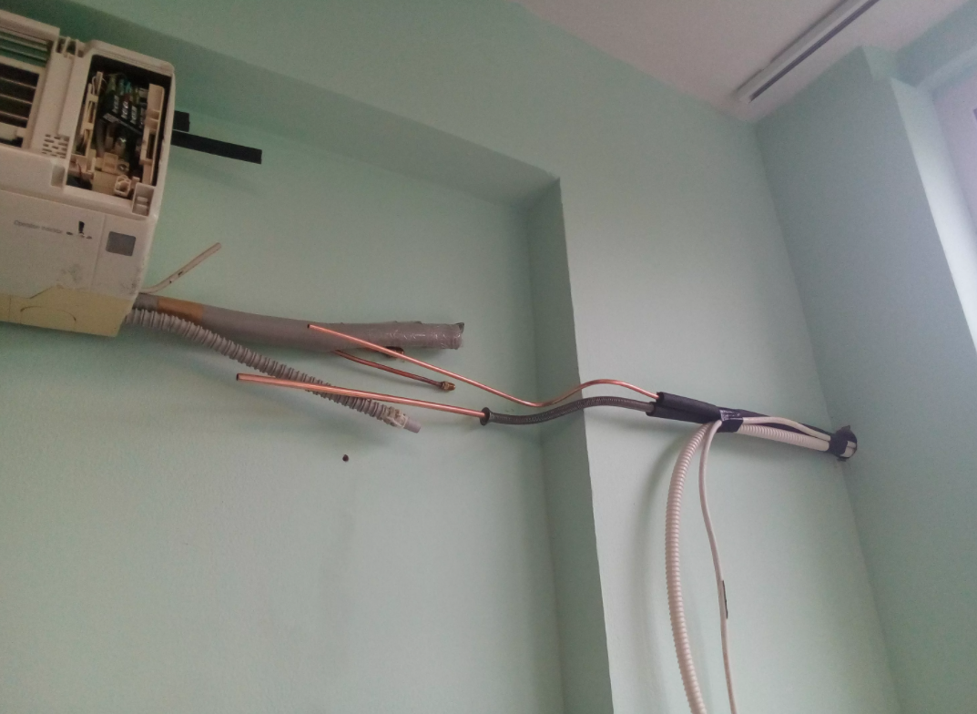 И, конечно же, внутренний блок должен висеть идеально ровно, чтобы конденсат не стекал на пол в комнате, а выходил наружу по дренажу.