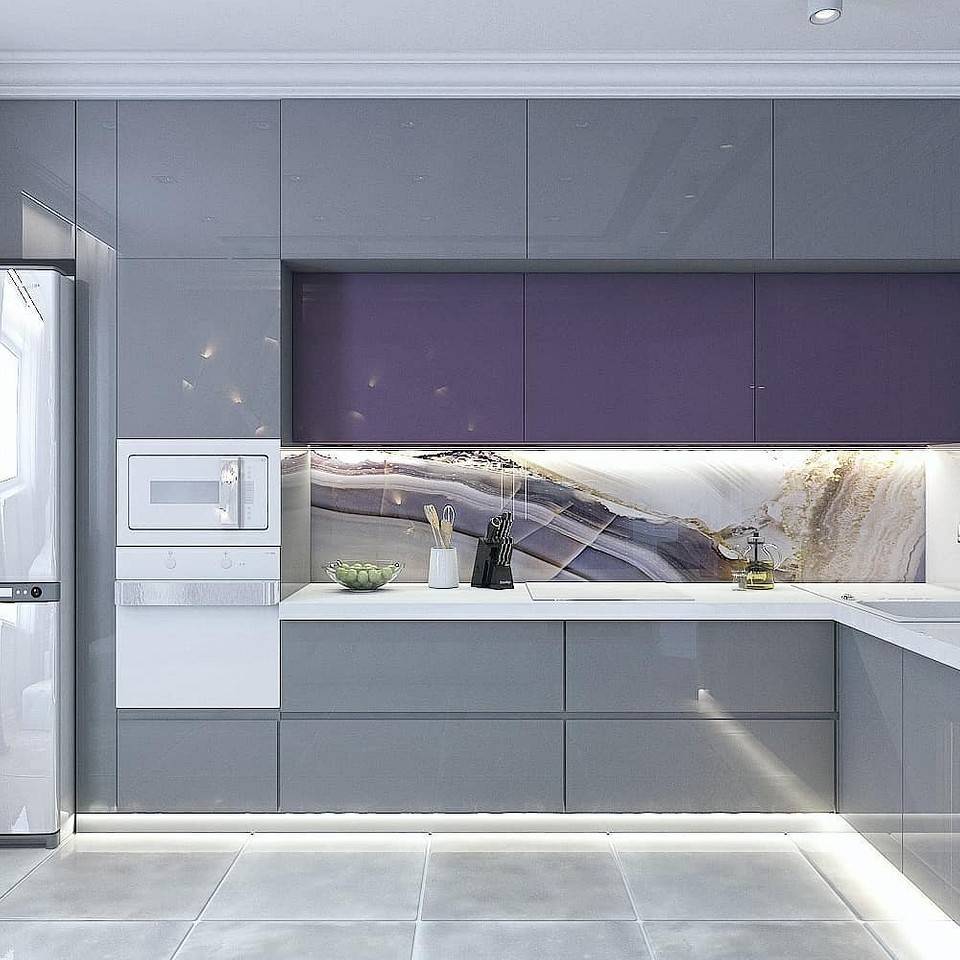 - Фартуки для готового кухонного гарнитура должны гармонично сочетаться с его цветом.