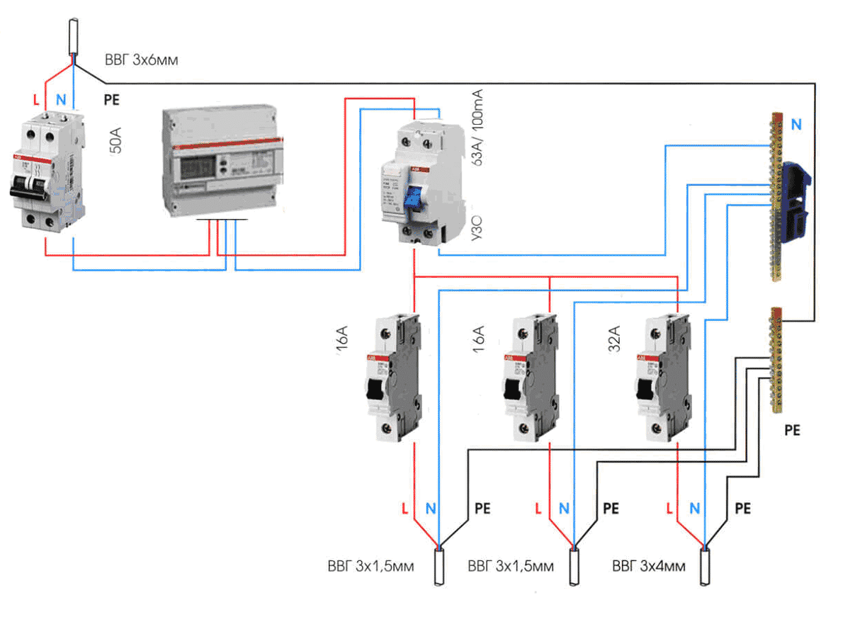 Схемы подключения УЗО в однофазной сети
