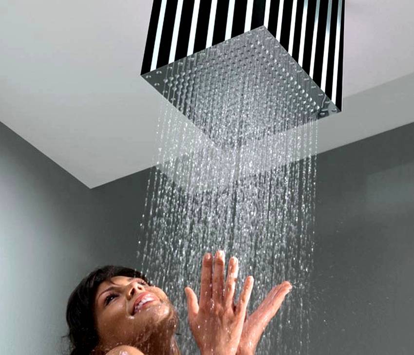 В ванных комнатах можно установить лейку для тропического дождя квадратной, прямоугольной или круглой формы. О тропическом дожде можно говорить тогда, когда размер стороны устройства составляет около 20 см, при этом у больших моделей он может достигать 60 см. Для круглой лейки мы говорим о диаметре (размеры аналогичны). Некоторые модели ливневых дождей могут иметь лейку, наклоняющуюся в необходимом направлении и освещение. Дорогие модели также могут быть оборудованы термостатом, подсветкой и другими функциями.