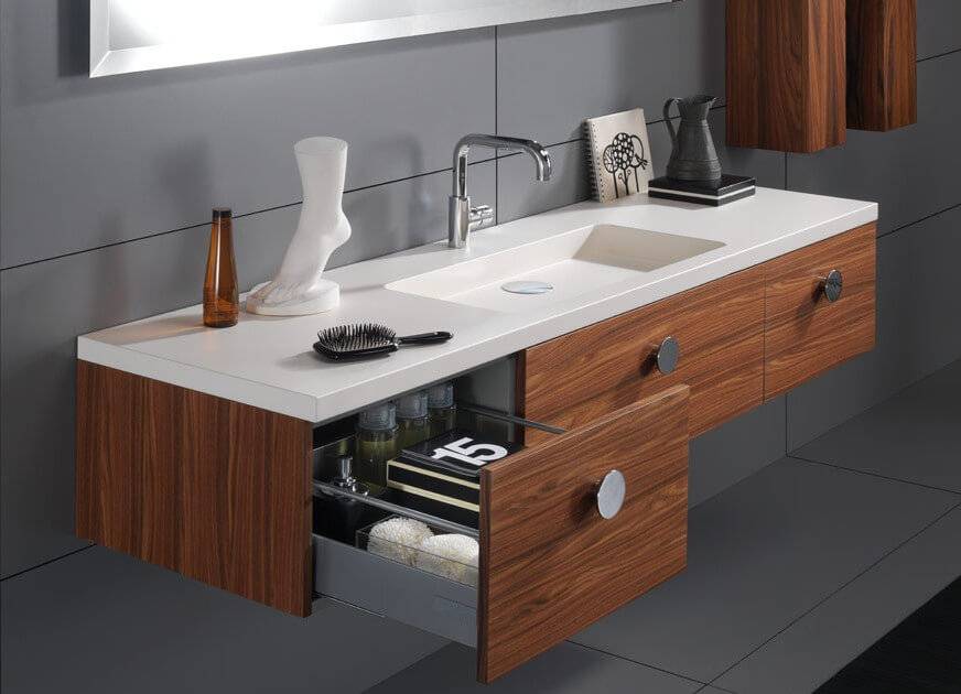 Для установки подвесных (плавающих) тумб необходимо вызвать мастера для размещения мебели без технических ошибок. Такие шкафчики часто приходится изготавливать на заказ, чтобы они более точно соответствовали требованиям владельца квартиры