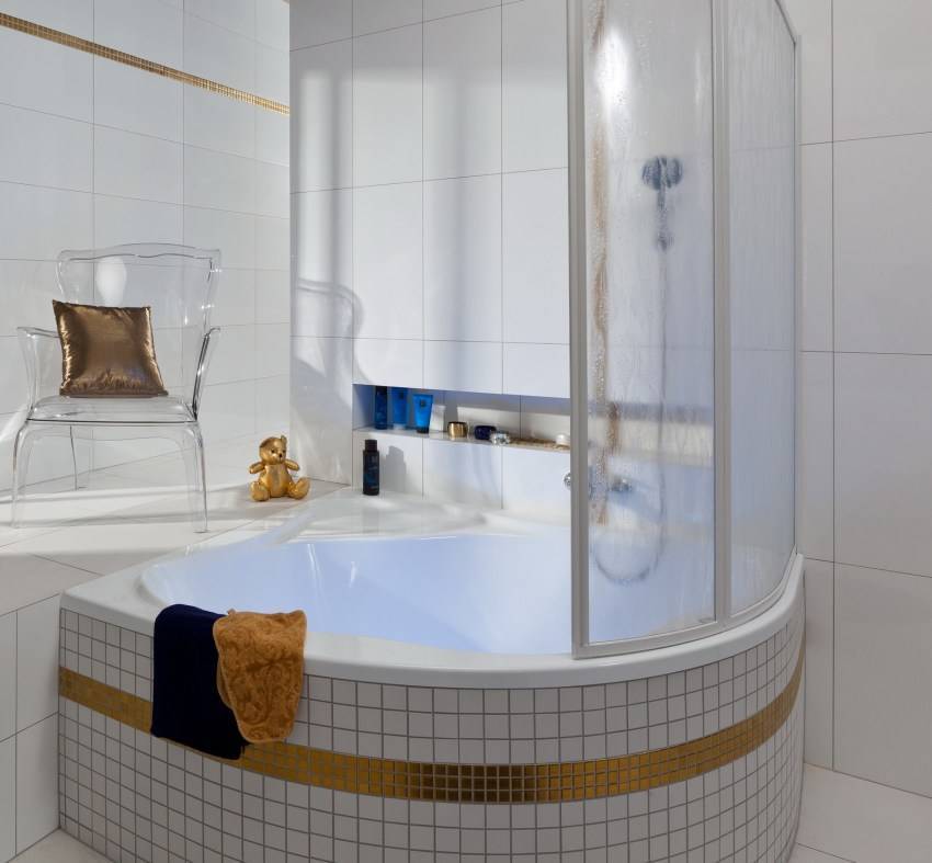 - Экономия пространства. Устанавливаемая в углу небольшой комнаты, ванна не отнимает полезной площади.
