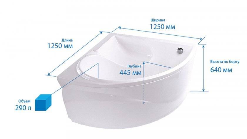 Что касается размеров, то и здесь вариантов великое множество. Как правило, «стандартная» длина начинается от полутора метров и достигает 1,8 метров, глубина составляет где-то 48 – 65 сантиметров, а общий объем равен приблизительно 400 литрам.
