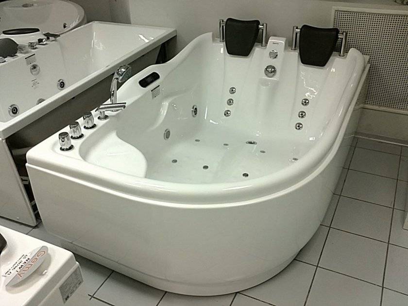 - Маленьких размеров конструкция, установленная в углу, позволяет расслабиться и покупаться полулежа человеку высокого роста. Комфортабельность важный показатель при выборе.