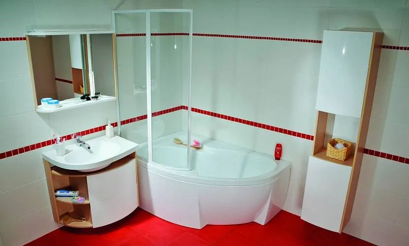 Акриловые угловые ванны. Их основной недостаток заключается в гибкости этого материала, которую не компенсирует даже стекловолокно, используемое для их усиления, а также жесткие рамы, на которые они, как правило, монтируются. Отсюда и следующий их недостаток (а может быть и нет) – особая, отличающаяся сложностью технология установки. Она предусматривает крепление ванны к прилегающим стенам как минимум в четырех местах и устройство под ее дном подушки из кирпича. Можно, конечно, игнорировать этот шаг, но в таком случае рассчитывать на длительную эксплуатацию ванны не стоит. Кроме того, среди этих видов угловых ванн достаточно часто встречаются подделки – их изготавливают из пористого пластика, покрытого тонким слоем акрила, который при неправильной установке достаточно быстро трескается. Отличить такую ванну можно, посмотрев ее срез (на краю загнутой части) – если там просматривается больше двух слоев материалов, то это именно такая ванна и есть. И еще – если пространство под прямой ванной можно использовать с пользой для дела, закрыв его раздвижным экраном, то с угловыми акриловыми ваннами такой номер не проходит. Экран для угловой акриловой ванны является глухим и кроме неудобств, но красивого внешнего вида, ничего не дает.