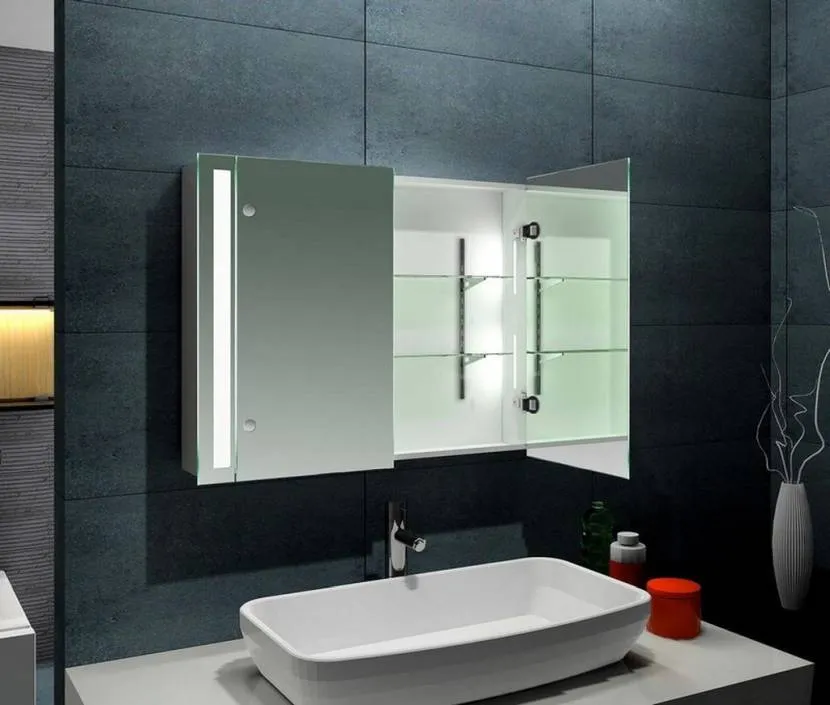 Когда зеркальце совмещается со шкафом, освещение будет играть дополнительную функцию, дающую возможность рассмотреть содержимое ящика. Лампы можно встроить непосредственно в ящик, а загораться они будут после его открытия. В продаже можно найти модели, оснащенные освещением, включающимся от движения руки: встраивается датчик движения, который дает возможность включить и выключить светильники одним движением.