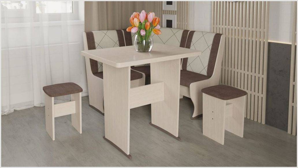 Модели с отсеками. Под сидениями размещено несколько ящиков, в которых хозяйка может хранить, например, кухонные полотенца и скатёрки, бакалею, крупы, посуду и т. д. Такие ящики могут занимать, как всё пространство от пола до сидения, так и часть. Верхние крышки бывают съёмными и откидными.