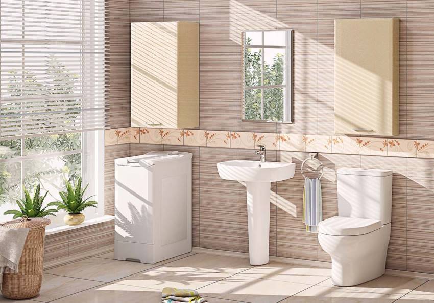 Такие ванные комнаты рекомендуют облицевать светлым кафелем, что визуально расширяет пространство. При этом лучше выбрать глянцевую, блестящую керамику, мелкую мозаику или зеркальную плитку. Хорошо смотрятся в маленькой ванной также фактурные изделия под металл.