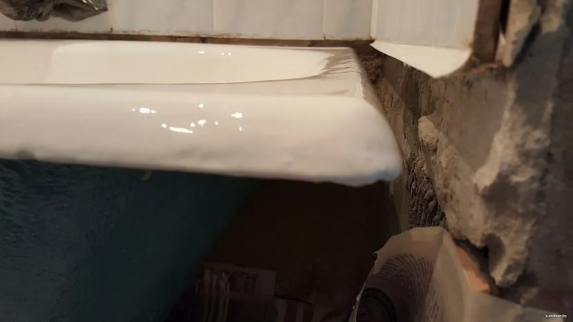- Смочите поверхность ванны и стены для повышения адгезии.