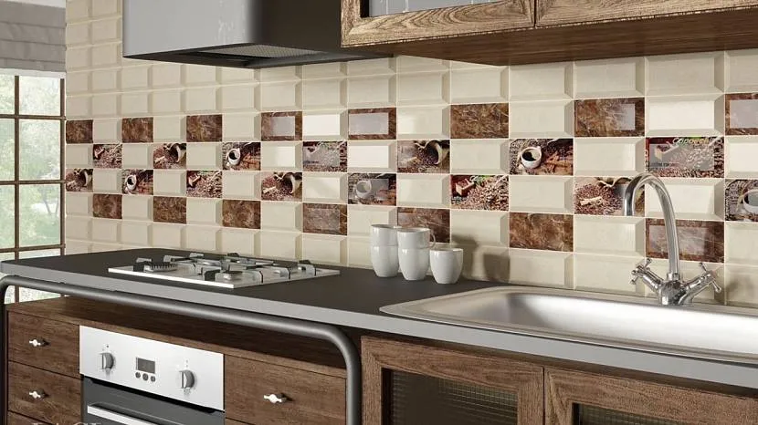 Плитка с декоративным рисунком для фартука на кухнюИсточник youtube.com