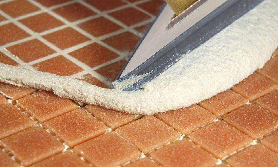 Обрабатывать швы нужно резиновым шпателем через сутки после укладывания кафеля. Излишки протирают, после высыхания пола его хорошо отмывают.