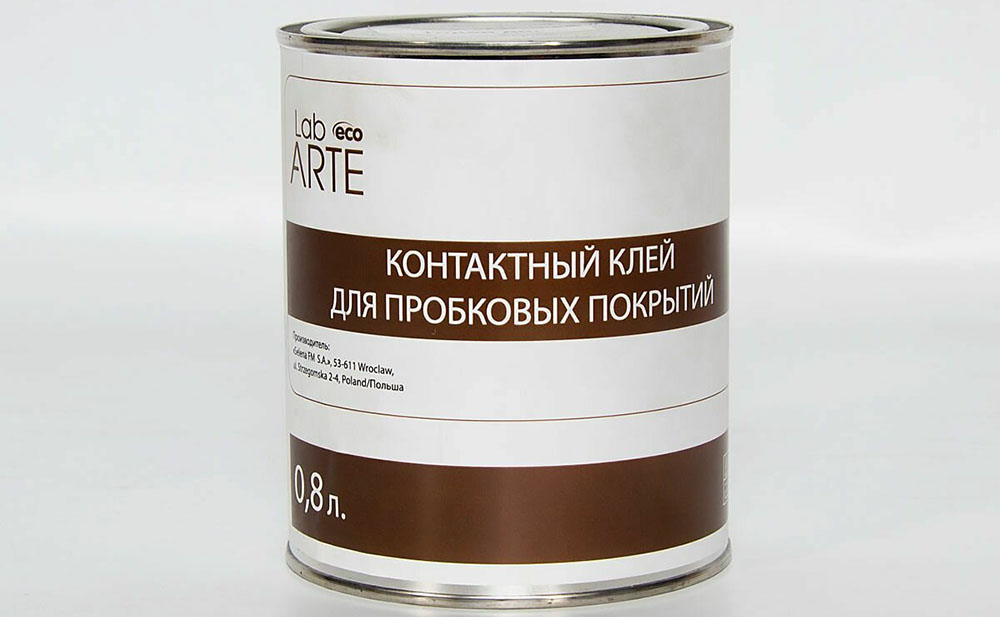 Для монтажа пробкового покрытия применяются два вида клеящих составов: универсальный акриловый и контактный, который используется чаще всего. Привычный для нас клей ПВА для пробки не подходит. Универсальный клей – это водный раствор акриловых смол. Он практически не имеет запаха, но работы с ним рекомендуется проводить в проветриваемом помещении. Его клеевая способность всегда оказывается ниже, чем у составов контактных.