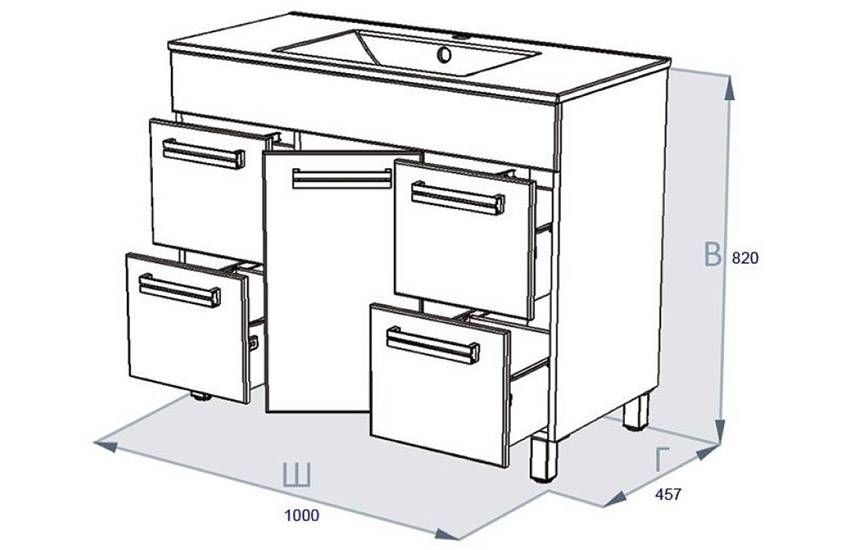 Размеры тумбы под раковину с выдвижными ящиками