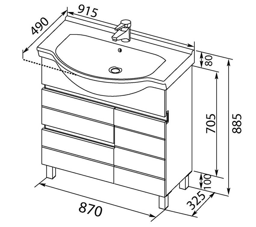 Таким образом, универсальная тумба для ванной имеет габариты: