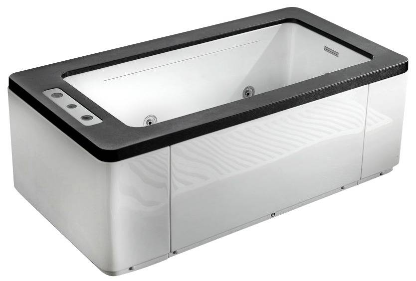 Акриловые ванны могут быть разных форм: прямоугольной, круглой или овальной, угловой, асимметричной. Прямоугольная купель хорошо впишется в небольшое стандартное помещение. Ёмкость оснащена несложным каркасом и одной боковой панелью. Опции, например, гидромассаж, на таких моделях бывают очень редко, так как устанавливать их сложно на ванну с одним подходом, а в дальнейшем — обслуживать и проводить ремонт.