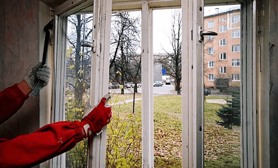 После того, как все необходимые размеры сняты и зафиксированы на бумаге, приступают к демонтажу оконного заполнения: