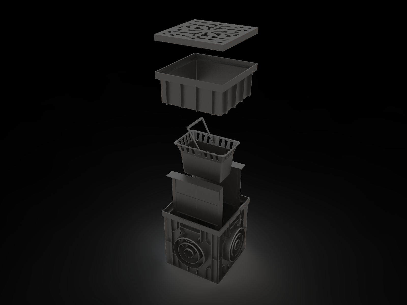 Дождеприемники, имеющие форму куба или прямоугольника — самый популярный тип конструкций. Их преимущество в возможности наращивать высоту устройства — если это необходимо. Приобретают 2-3 модели и устанавливают их друг на друга. Наращивание емкостей приемника позволяет получить глубокий резервуар и решает проблему водостока.