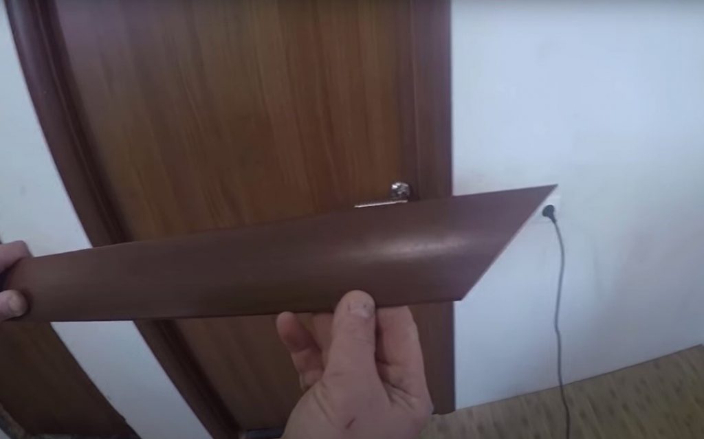 - Нарезается профиль под необходимые параметры двери. Даже если он будет короче на 5 мм или на 1 см, ничего страшного, он все равно скроется за обналичкой;