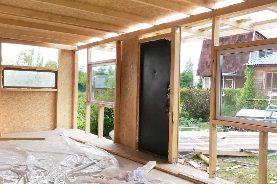 В доме каркасного типа можно забыть об обкосячке, потому что сам каркас уже дает формы для оконных и дверных мест, в которых обеспечивается будет поддерживаться уровень жесткости.