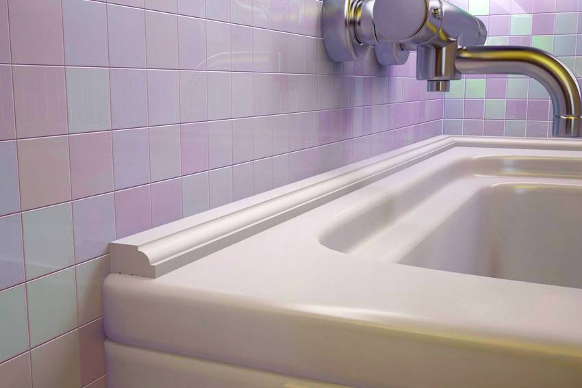 При правильной установке плинтуса, вода не будет проникать в пространство между ванной и стеной. Если изделие неплотно прилегает в некоторых местах, оно вновь проклеивается