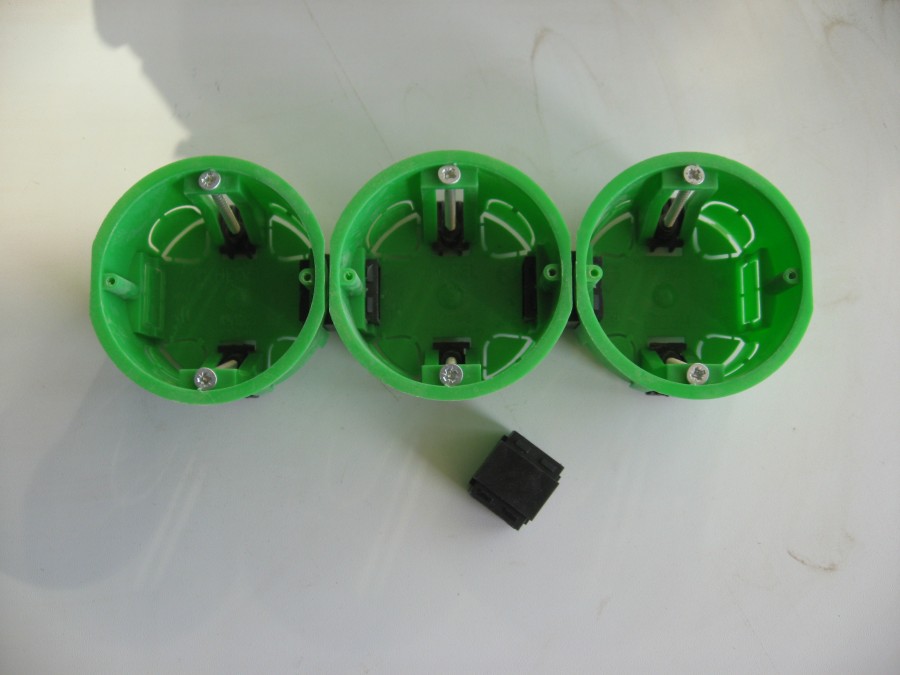 Чтобы осуществить данный процесс быстро, надо приобрести коробки под розетки с распорными ножками. Для дополнительного крепежа следует купить саморезы. На этапе сборки следует заранее проложить питающий кабель.
