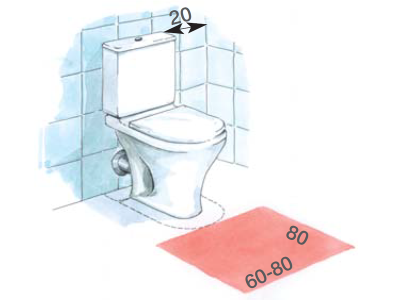 Дверь. Расстояние от двери до перпендикулярной стены может определять функциональность всей ванной комнаты. Если оно составляет 60 см, стиральную машину можно разместить в углу комнаты. Немного больше места (мин. 70 см) необходимо для установки унитаза стандартного размера на перпендикулярной стене.