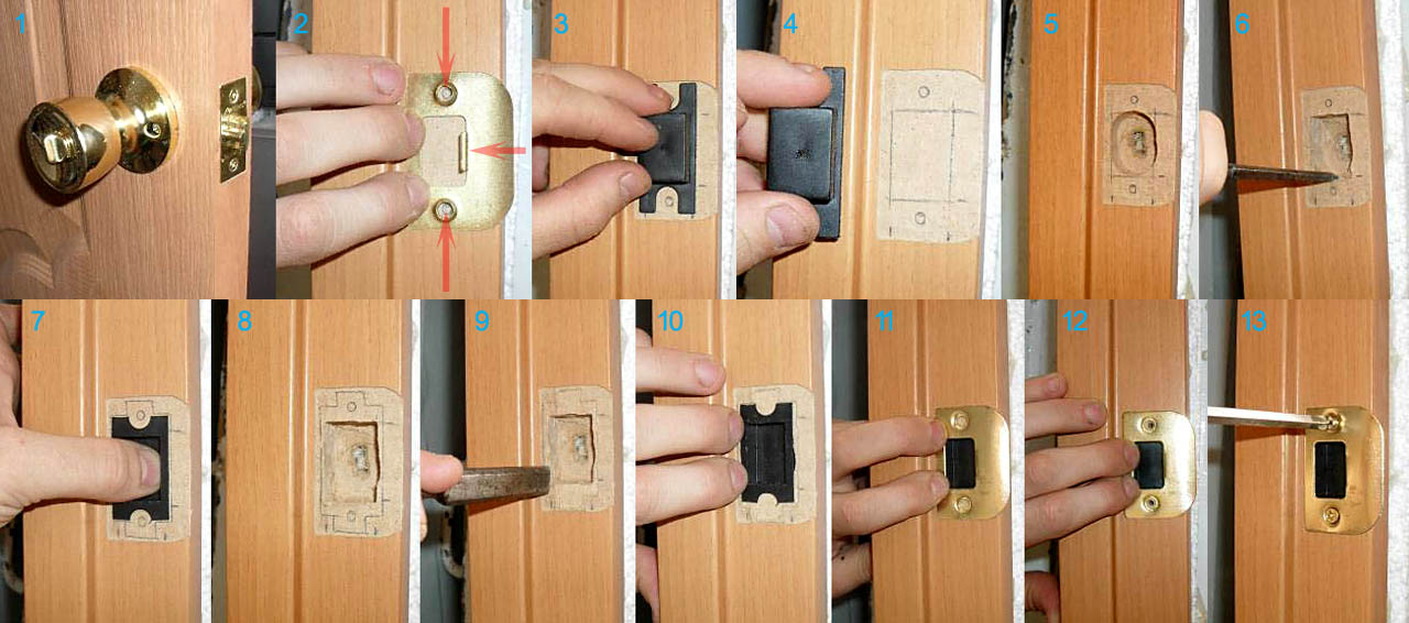 Как врезать замок в межкомнатную дверь: пошаговые фото