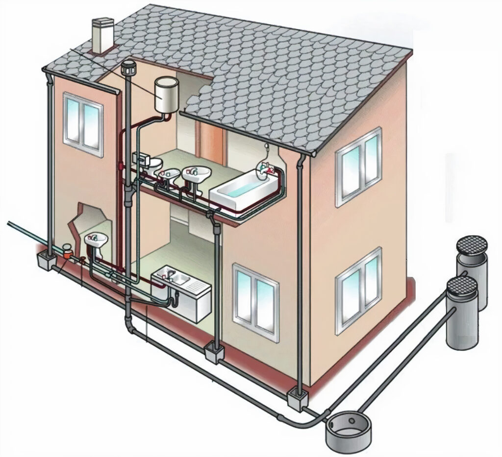 Раньше почти все трубы этой системы были чугунными. Их замена и чистка были трудоемкими работами. Теперь они выполняются из пластмассы и композитных материалов. Они легче, быстрее монтируются, реже засоряются, их замена и подключение (врезка) не вызывает трудностей.