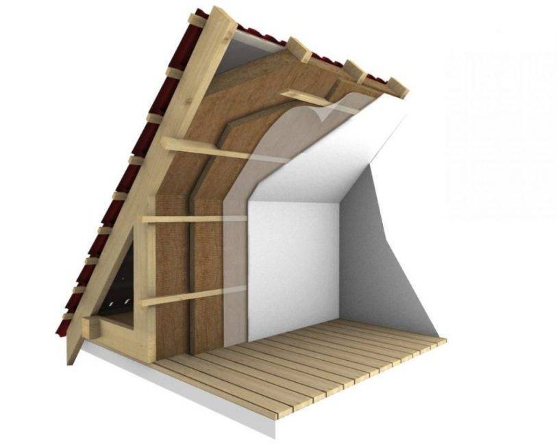 Если у кровли имеются фронтоны, нужно утеплить и их. Лучше всего это сделать с наружной части крыши, но если это невозможно, придется работать внутри. Материалы пригодятся те же самые, только понадобятся дополнительно брусья.