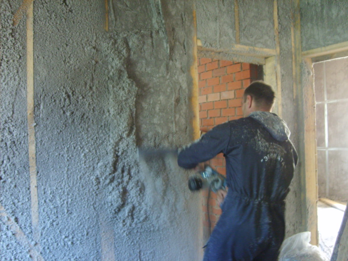 Сухой второй слой законопатит щели, вата задувается во все неровности, проемы, обрабатываются стыки. Мокрый монтаж допустимо делать только при плюсовой температуре.