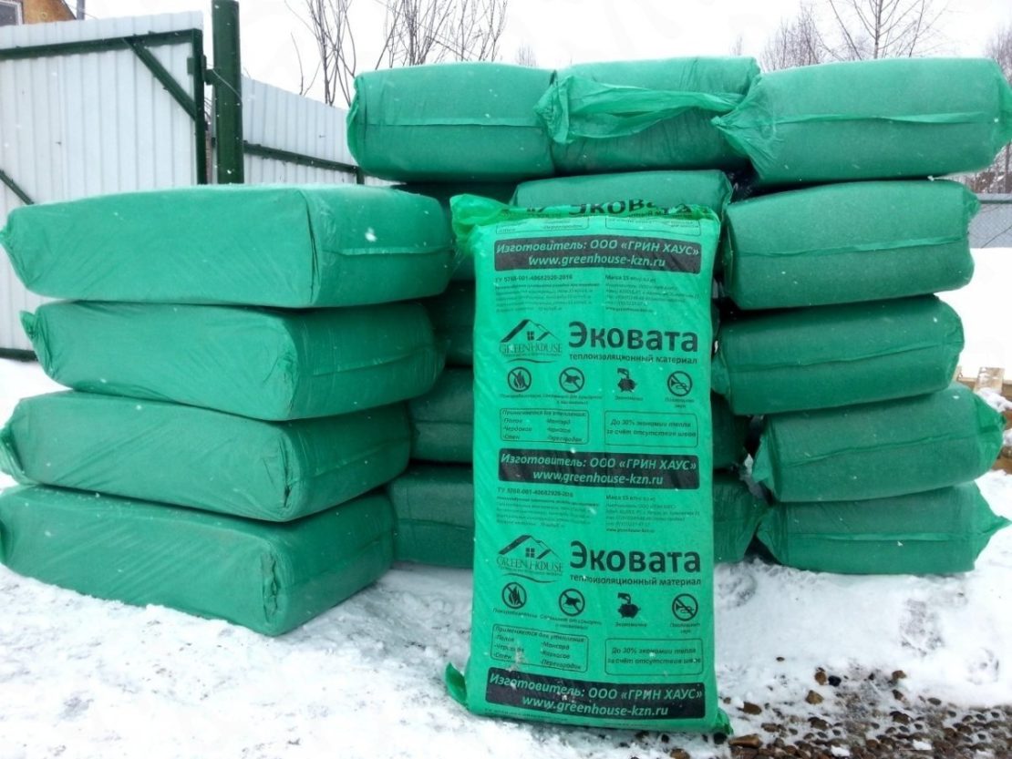 Это лёгкий и рыхлый целлюлозный наполнитель. Но, в отличии от негорючей минваты, эковата огня боится (группа Г2). Плюс укладывать такой утеплитель нужно с учётом, что он даст усадку со временем и под воздействием влажного воздуха.
