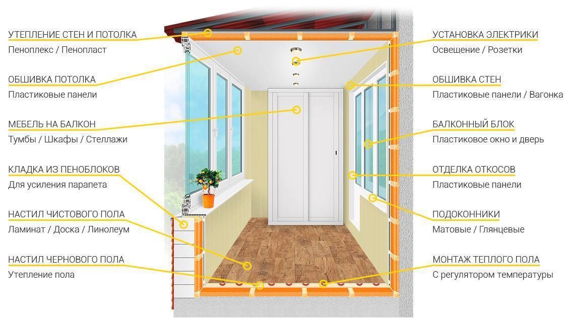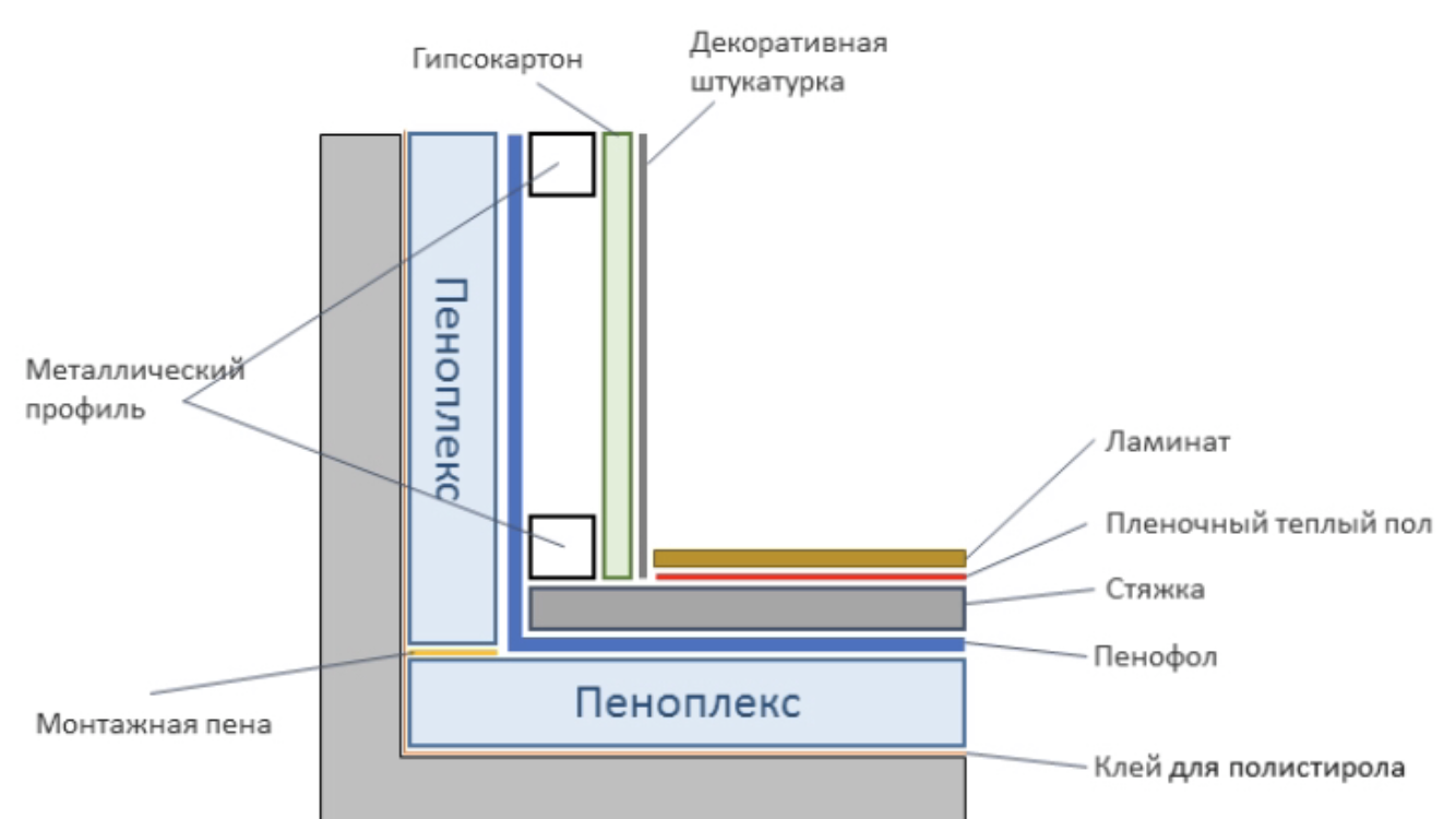 Утепление стен балкона состоит из нескольких этапов. Рассмотрим подробно каждый из них.