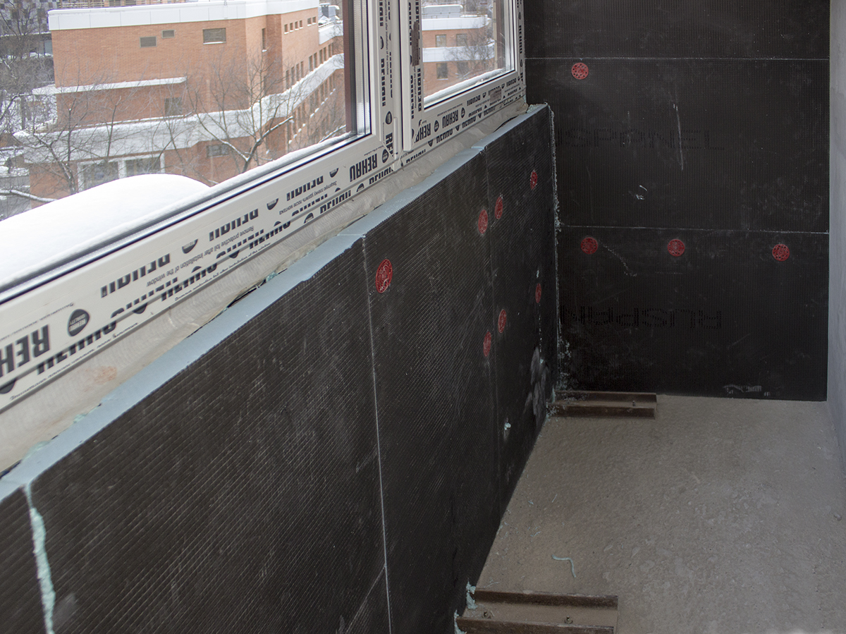 Возникает необходимость в наружном утеплении, которое позволяет не только сэкономить площадь и но и решить ряд технических проблем, связанных с вынесением «точки росы» за периметр площади балкона.