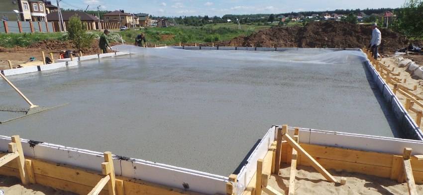 Завершающим этапом монтажа утепленной плиты фундамента является заливка основания бетонным раствором
