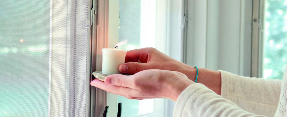 - Пройтись вдоль стыков с зажигалкой или зажжённой спичкой. Отклоняющийся огонь быстро обнаружит щели незаметные для глаза;
