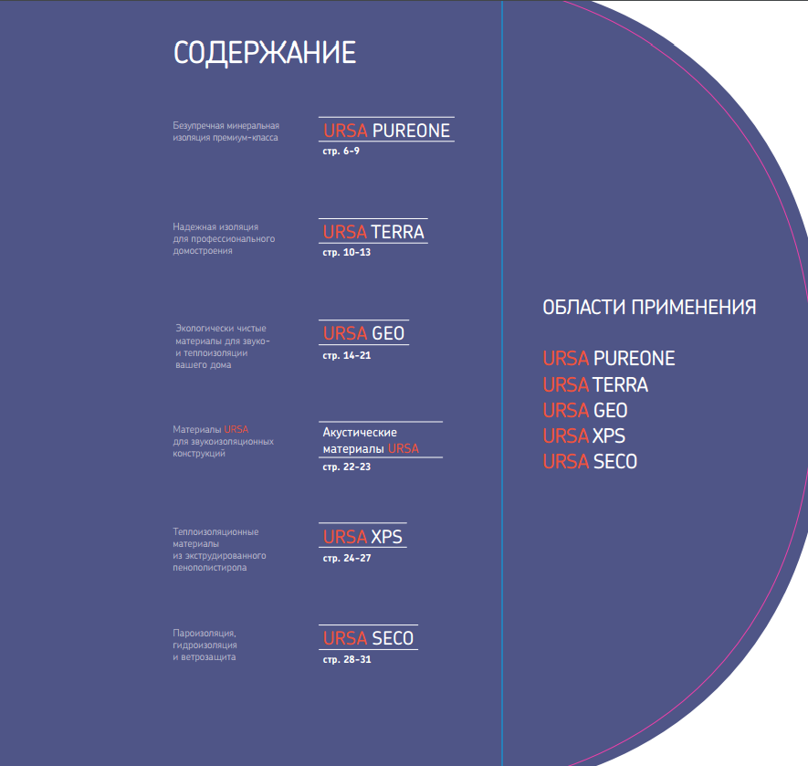 Бренд «URSA» представляет вторую группу — теплоизоляционные материалы. Маркетологи компании не стали мучить покупателей огромной линейкой, а разделили всю продукцию на 5 основных групп: