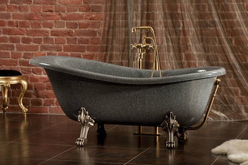 Любая модель ванны на ножках имеет весь необходимый набор функционального оборудования. Что касается материалов изготовления, лучше отдать предпочтение чугуну, меди, стали или искусственному камню, которые характеризуются высшей степенью устойчивости и стойкостью к повреждениям.