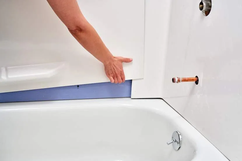 - установить фальш-панель и отделать стену в месте монтажа конструкции нужно так, чтобы она была прикреплена на стационарную часть отделки, но при этом за ней было место для проводки водопроводных труб;