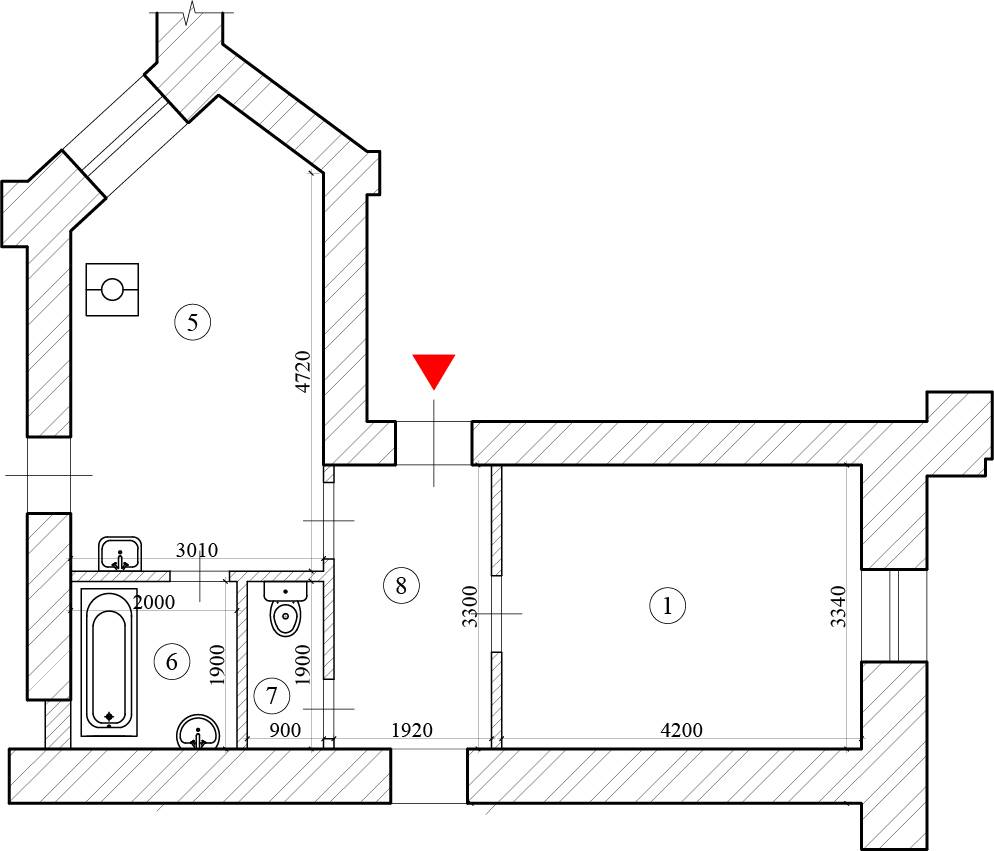 Ванная и санузел до перепланировки.