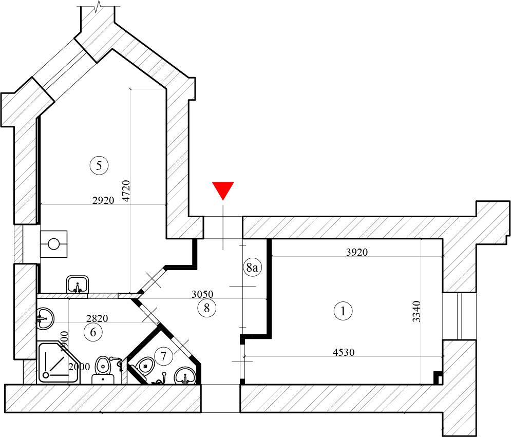 Т.к. убрали стену между двумя помещениями, пришлось переделывать гидроизоляцию. Вместо двух помещений получилось одно, один дверной проем оказался лишним, следовательно, его заложили.