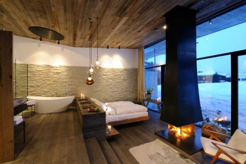 Сразу стоит оговориться, что создать такой проект – недешевое удовольствие. Сейчас, по большей части, ванная в спальне может встретиться у владельцев особняков или в роскошных отелях.