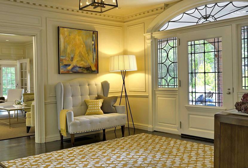 Прихожая – визитная карточка дома. Здесь в ходу старинная, но все еще функциональная мебель. Особенно комоды с ящиками, закрывающимися на замок. Вместо дверей можно использовать тяжелые портьеры. Распространенные оттенки – кремовый, медовый, благородный бордо.