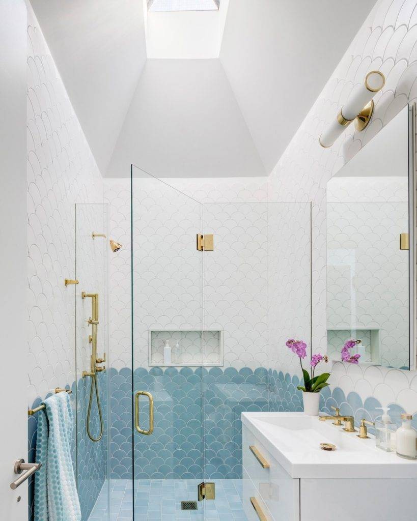 Первый стиль интерьера, который приходит на ум, когда мы думаем о голубой ванной, — это морской стиль. Обустройство небольших ванных комнат часто осуществляется в соответствии с этим стилем, как и мансардные ванные комнаты и просторные ванные комнаты в многоквартирных домах. Это оправдано определенной универсальностью этого стиля, который не перегружен и допускает очень широкий спектр комбинаций.