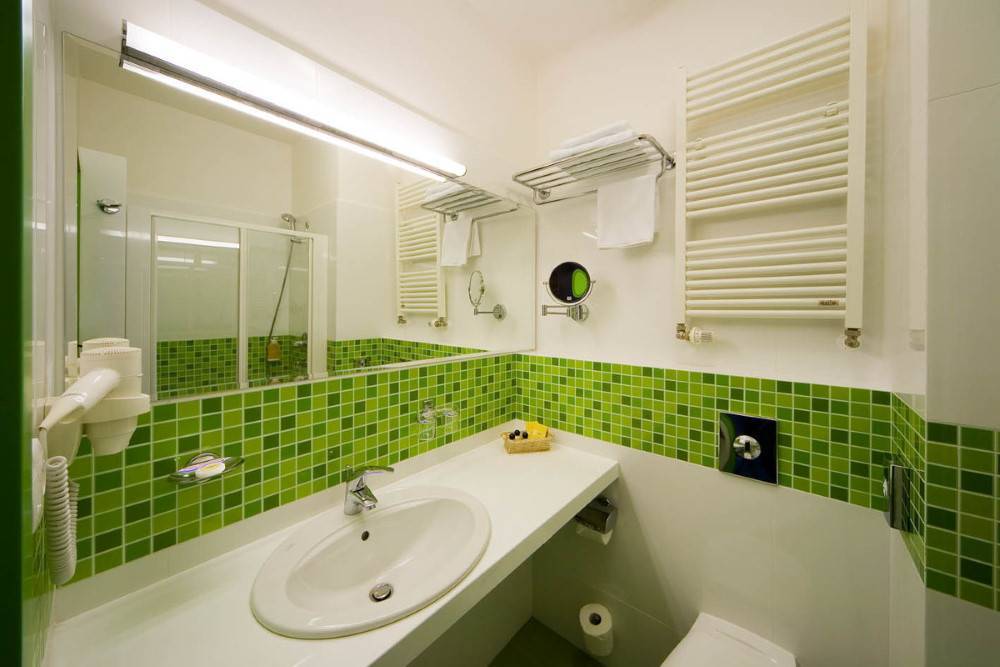 Яркие цветовые акценты избавят ванную от сходства с больничной палатой