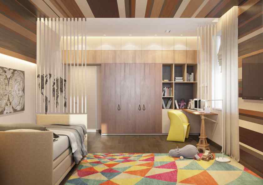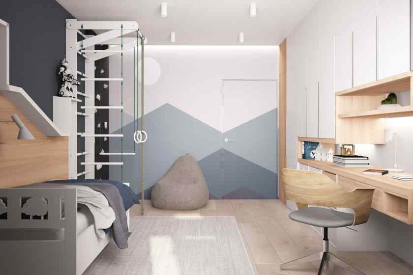 Для детской комнаты справедливы те же правила, что и для главной спальни. Исключение – цветовая гамма. Можно придерживаться аккуратных сочетаний оттенков синего, голубого, розового и желтого с бежевым или белым. Главное – не выходить за рамки двух-трех гармонирующих основных цветов. Минимализм в детском интерьере должен балансировать между живостью и лаконичностью, доставлять радость ребенку и эстетическое удовольствие родителям.