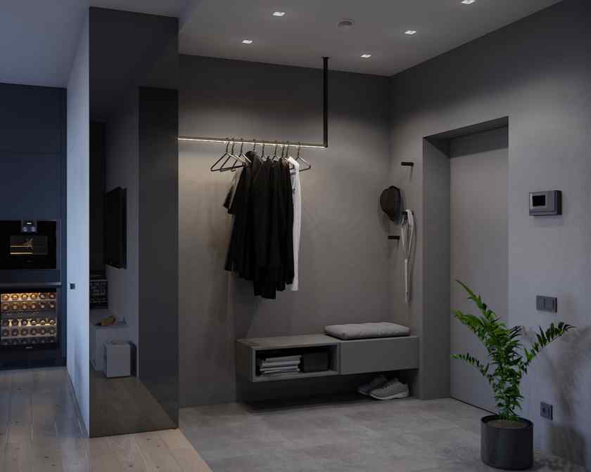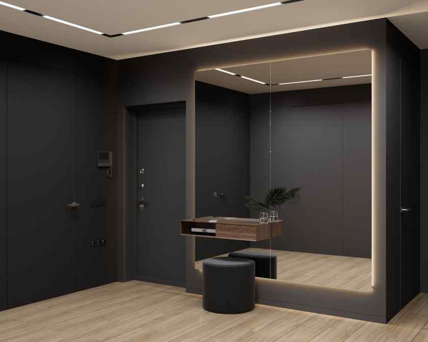 Как правило, планировка устроена таким образом, что в эту часть квартиры естественный свет не попадает в больших количествах. Мягкого рассеянного освещения можно добиться, используя незаметные источники света, сливающиеся с интерьером.