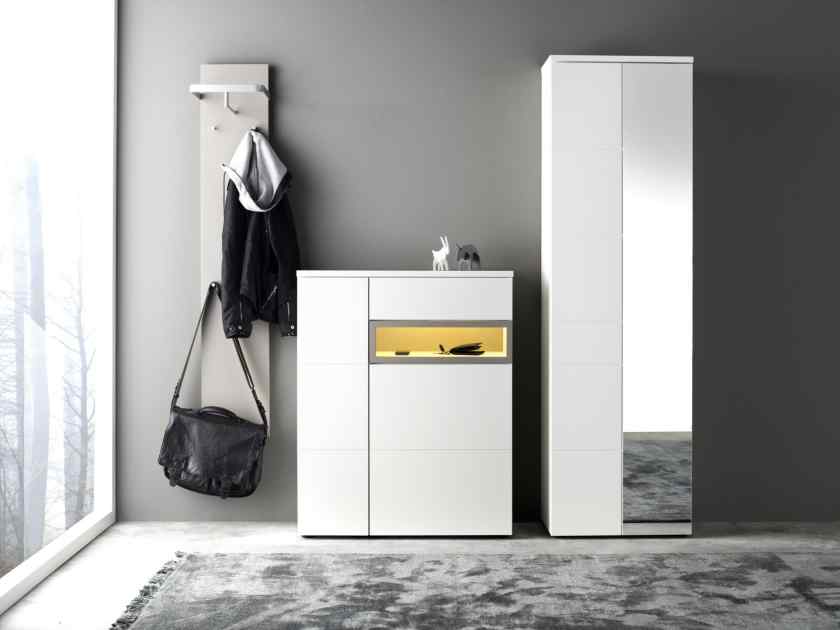 В прихожую должен вмещаться шкаф для верхней одежды и обуви. Чтобы не нагромождать интерьер, рекомендуется использовать встроенную в стену модель в тон обоям. Для визуального расширения пространства можно использовать зеркала.