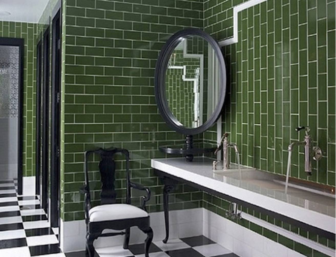 Этот прием относится к классике: нижнюю треть стены делают более темного цвета, верхнюю — на несколько тонов светлее. Этот способ раскладки керамической плитки, мягко говоря, не на пике популярности. Был он популярен примерно десятилетие тому назад. Но есть несколько приемов, которые придают классике современное звучание.