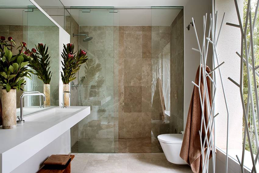 При соответствующем выборе формы, материала и отделки, перегородка может стать украшением санузла.