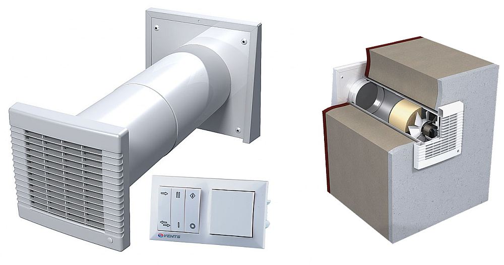 Что касается вентиляции, которую решено провести через стену, то здесь можно использовать стандартные решения: естественный воздухообмен или принудительный. Разница между ними соответственно – отсутствие или наличие вентиляторов.